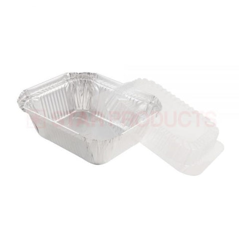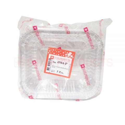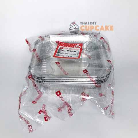 ถาดฟอยล์สี่เหลี่ยม สำหรับใส่เบเกอรี่ #4504-P พร้อมฝาปิดใส 5 ชิ้น/ชุด